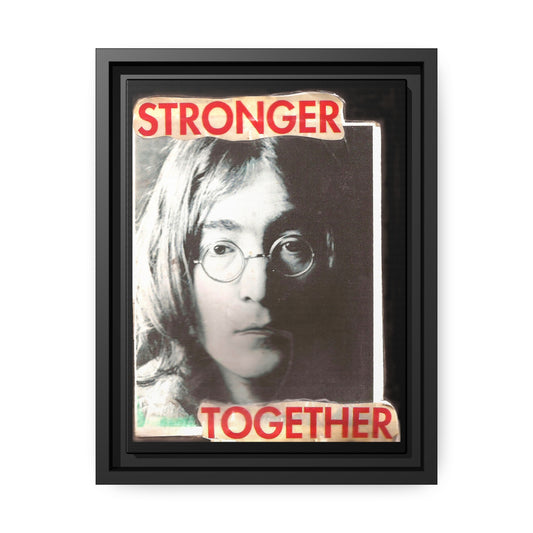 Stronger Together - John Lennon - **ncf art** - Mixed Media Collage - Black Matte Canvas, Black Frame