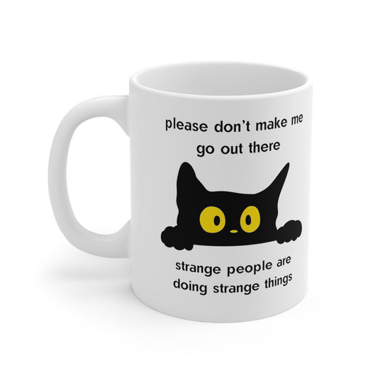 Please Don't Make Me Go Out There Scared Kitty Ceramic Mug 11oz