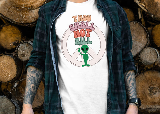 Thou Shall Not Kill - Alien Peace Sign - Short Sleeve Tee